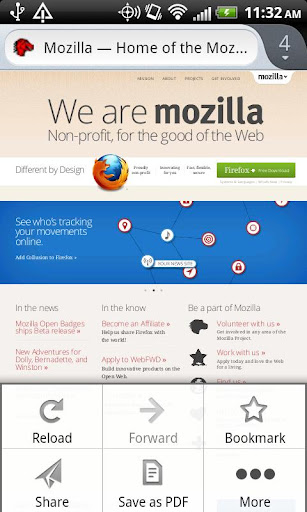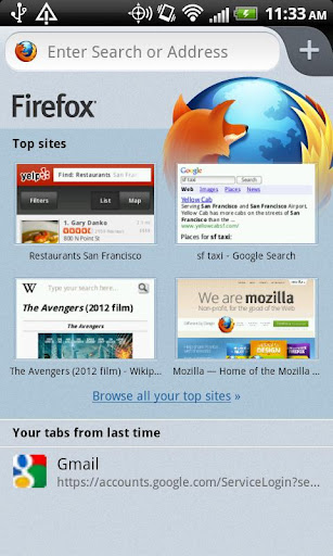 Nowością w nowej wersji mobilnej przeglądarki Firefox są także zmiany w Awesome Screen, ekranie dającym dostęp do najczęściej odwiedzanych stron, zakładek, historii przeglądania i zakładek stron otworzonych w przeglądarce (tabs).